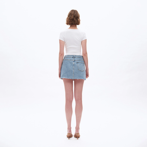 Elevate your wardrobe with the Bayeas Rhinestone Denim Skirt, featuring a flattering A-line silhouette that complements every shape. Crafted from classic denim, this mini skirt is enhanced with subtle rhinestone detailing for a touch of refined sparkle. The raw hem adds an edgy, modern finish, making it versatile for both casual and dressier occasions. Durable and stylish, this skirt combines timeless denim craftsmanship with contemporary accents to ensure a standout addition to your collection.