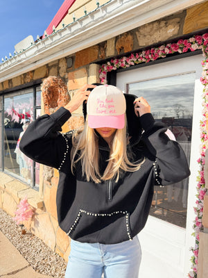 Experience cozy elegance with the Brielle Black Hoodie, crafted from soft brushed terry fabric for warmth and comfort. Its half-zip design allows easy layering and adjustable ventilation, while the subtle jeweled accents add a refined touch of sophistication. Perfect for both casual outings and relaxed workdays, this hoodie combines functionality with polished style.