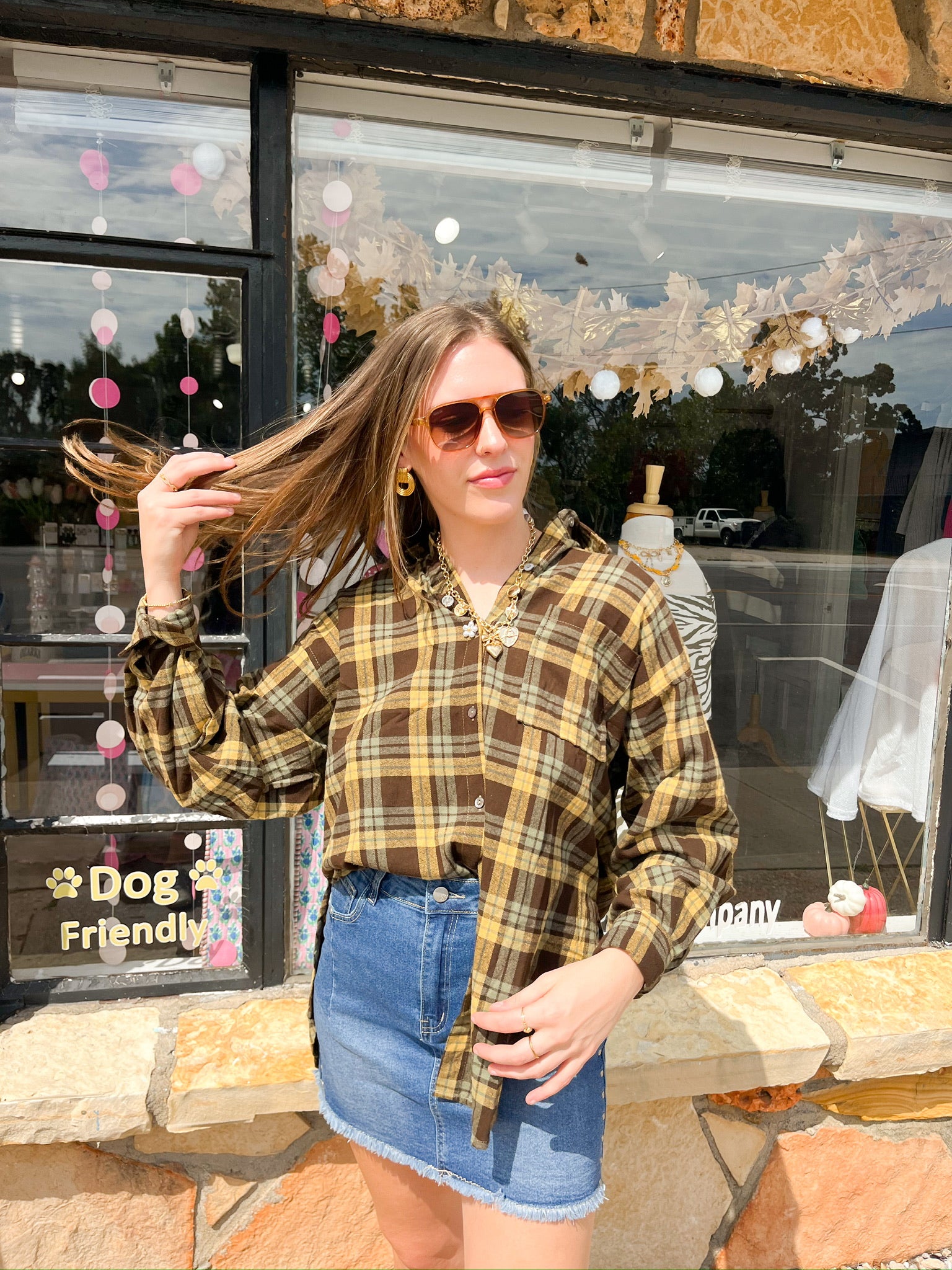 The Cara Plaid Shirt combines classic style with thoughtful details, featuring a front button-down closure for adjustable comfort and a round hem that offers a modern silhouette. Crafted for versatility, this shirt is ideal for layering or wearing on its own, providing both structure and ease in your everyday wardrobe.