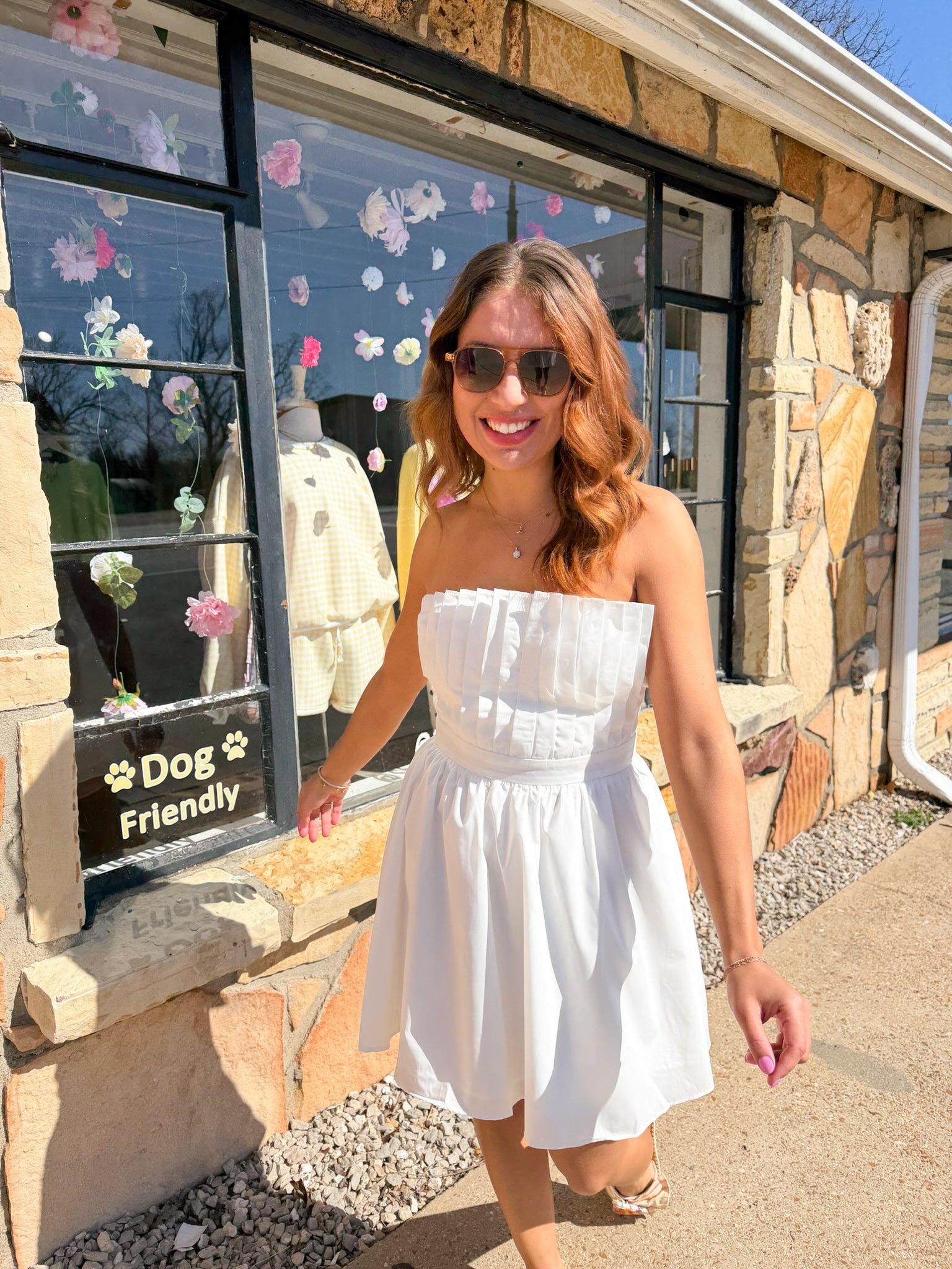 The Dakota White Pleated Strapless Dress combines timeless elegance with contemporary silhouette. This strapless design features refined pleating throughout, creating dimension and movement while the fitted bodice smoothly transitions into a flared mini skirt for a flattering, balanced proportion. The clean white palette makes it versatile for various occasions—from cocktail events to upscale casual gatherings. The structured construction ensures the dress maintains its shape throughout wear, while the strapless neckline offers a sophisticated, polished appearance. Perfect for those seeking a dress that delivers both style and wearability.