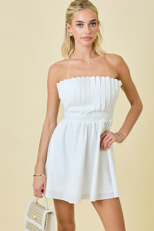 Dakota White Pleated Strapless Dress