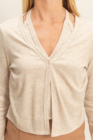 The Hannah Taupe Layered Top combines style and function with its sleek, form-skimming design that enhances your silhouette effortlessly. Crafted for comfort, it offers versatile layering options—wear it alone for a chic casual look or under a blazer to elevate your professional wardrobe. Perfect for transitioning from daytime ease to evening sophistication, this piece is a refined addition to any modern wardrobe.