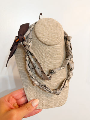 Create a custom build your own scarf necklace in our boutique today with these Knotted satin scarf.