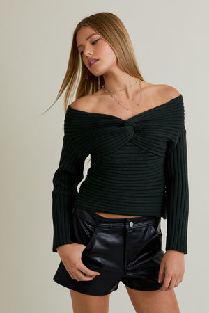 Elevate your wardrobe with the Leah Green Top, an expertly crafted off-shoulder knit sweater designed for both comfort and style. Its soft knit fabric provides warmth while allowing breathability, making it ideal for layering in cooler seasons. The off-shoulder design adds a touch of sophistication, perfect for dressing up or down. This versatile piece combines relaxed fit with refined details to enhance your everyday look effortlessly.