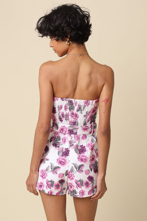 Millie Floral Strapless Belted Romper