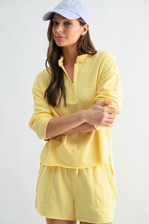 PAIRS WITH OFFSET RAW EDGE HALF ZIP SET TOP!!