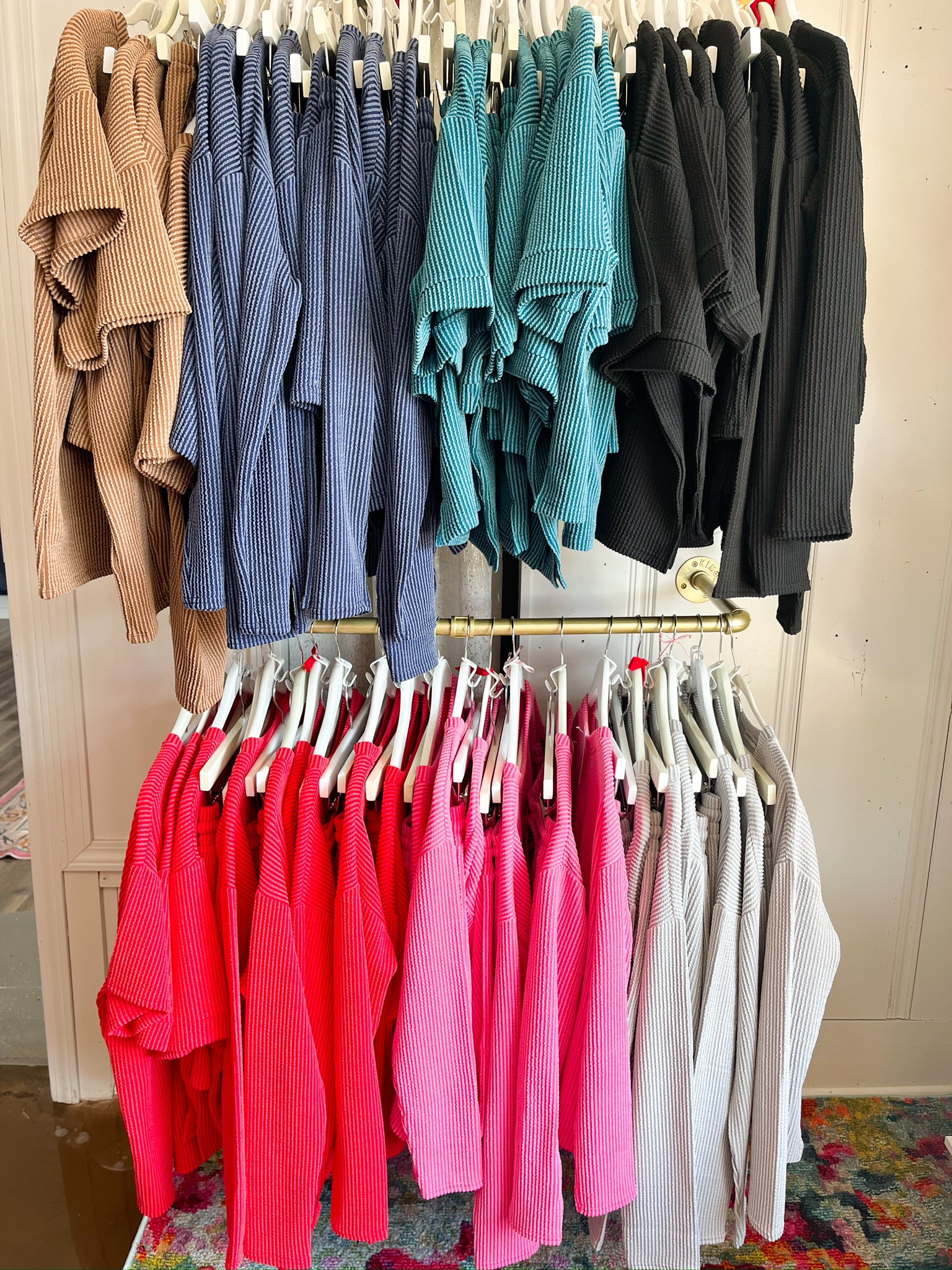 This Rib Long Sleeve Tee & Shorts Set in vibrant fuchsia combines comfort and functionality. The round-neck tee offers a clean, classic fit that pairs seamlessly with the shorts, which include practical pockets for everyday convenience. Ideal for layering or wearing alone, this set delivers both style and ease for versatile wear.