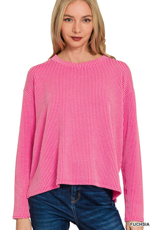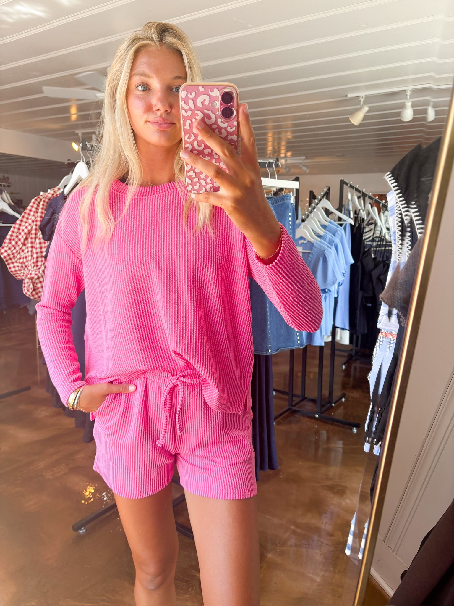 Rib Long Sleeve Tee & Shorts Set Fuchsia