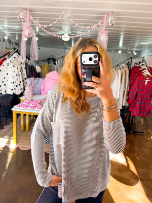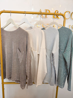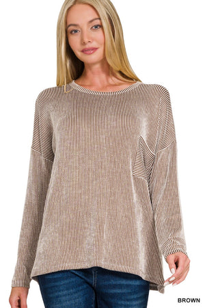 Crafted from stretched knit material, this ribbed long-sleeve top delivers a refined silhouette with understated sophistication. The ribbed construction provides gentle shaping while maintaining comfort and flexibility throughout the day. Its oversized cut offers a contemporary, relaxed fit that works seamlessly with both casual and elevated styling. The extended sleeves and structured ribbing create visual interest without compromising wearability. A versatile essential that transitions effortlessly across seasons and occasions.