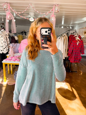 Ribbed Long Sleeve Top Green