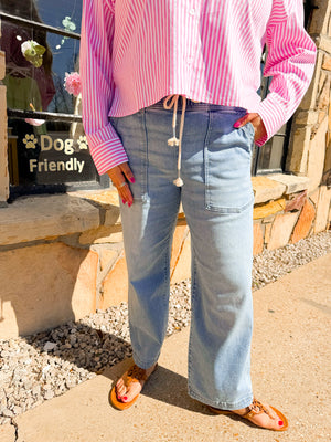 Risen Drawstring Medium Wash Denim