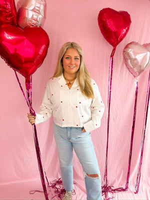 Sally Heart Top Elevate your Valentine's collection with this expertly crafted embroidered heart top. Featuring an all-over heart design that delivers sophisticated charm without sacrificing comfort, this piece seamlessly transitions from casual outings to intimate gatherings. The precision embroidery showcases meticulous attention to detail, while the thoughtful placement ensures visual impact from every angle. Perfect for those who appreciate quality craftsmanship and timeless romantic aesthetics.