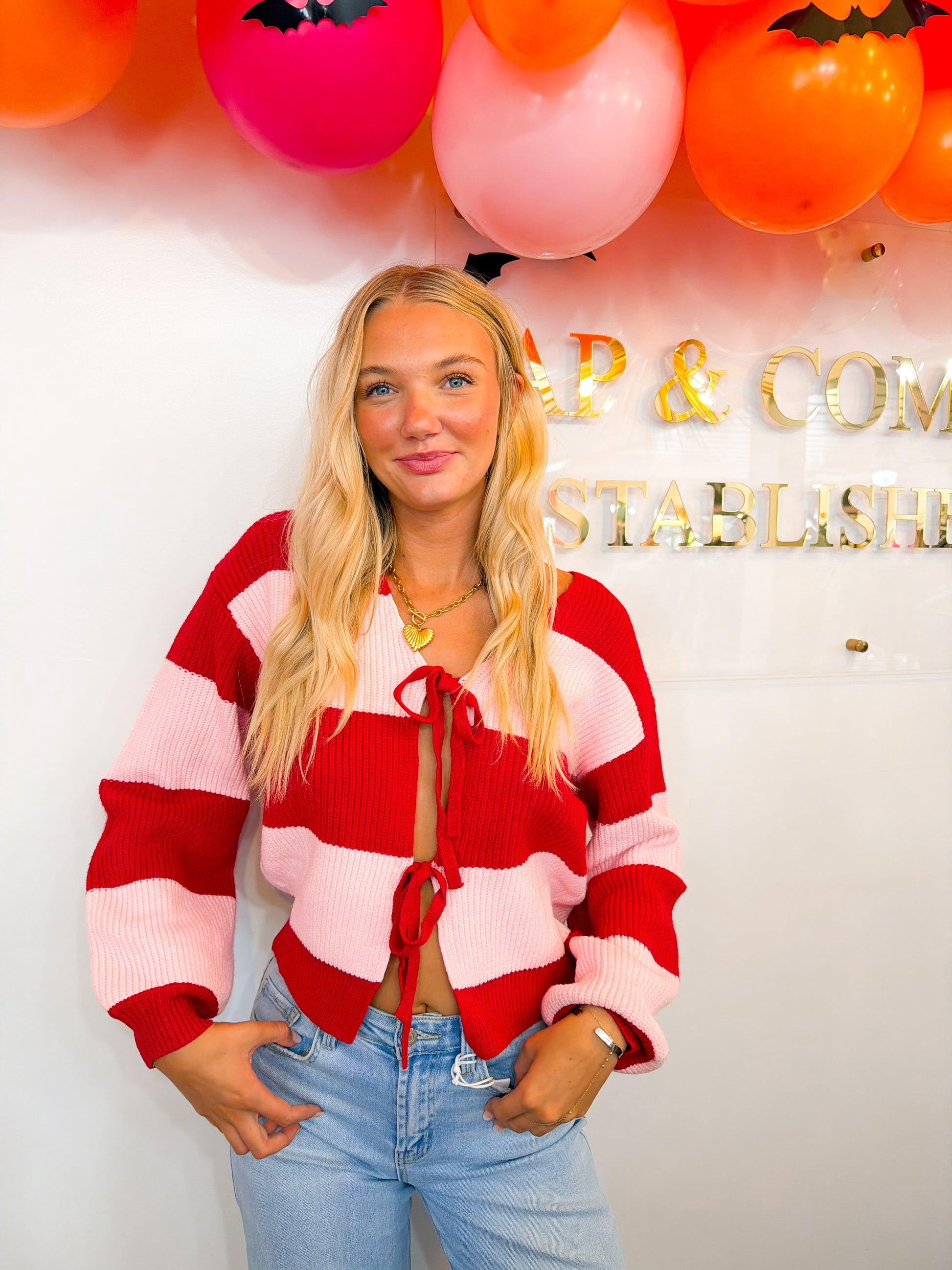 Elevate your wardrobe with the Sandy Pink Striped Cardigan, featuring a refined front tie detail and long sleeves for versatile wear. The subtle stripe pattern adds a sophisticated touch while the lightweight fabric ensures comfort throughout the day. Perfect for layering, this cardigan combines style and function seamlessly, ideal for both casual and polished looks.