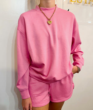 This Scuba Pullover & Shorts Set in Candy Pink offers a streamlined, modern look crafted from durable scuba fabric. Its smooth texture and structured fit provide comfort and style, making it ideal for casual outings or relaxed settings. The vibrant candy pink shade adds a fresh, contemporary appeal to your wardrobe while the coordinated pullover and shorts ensure effortless, polished pairing every time.