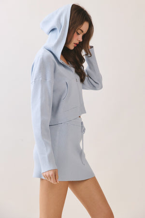 The Tara Blue Jacket combines functionality with refined comfort. This zip-up hoodie features stretchy ribbed knit construction that adapts to your movements, while practical front pockets keep essentials within reach. The streamlined design transitions seamlessly from game day to everyday wear, offering the perfect layer for unpredictable weather. Built for active lifestyles, this jacket delivers durability and style without sacrificing breathability or ease of movement.