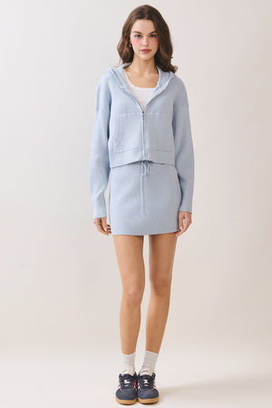 Elevate your wardrobe with the Tara Blue Skirt, a versatile essential designed for effortless style. Crafted from premium ribbed knit fabric, this fitted skirt offers a flattering silhouette that moves with you throughout the day. The elastic waistband ensures all-day comfort without compromising on polish, making it perfect for both casual outings and elevated looks. Whether styled with a crisp button-down or a relaxed tee, this piece delivers timeless appeal with modern construction.
