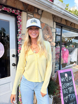 Elevate your wardrobe with the Wendy Yellow Top, a textured button-up knit piece designed for both comfort and style. Its unique knit texture adds depth and sophistication, while the button-up front offers versatile wear options. Perfect for layering or wearing alone, this top combines expert craftsmanship with a vibrant yellow hue to brighten any outfit.